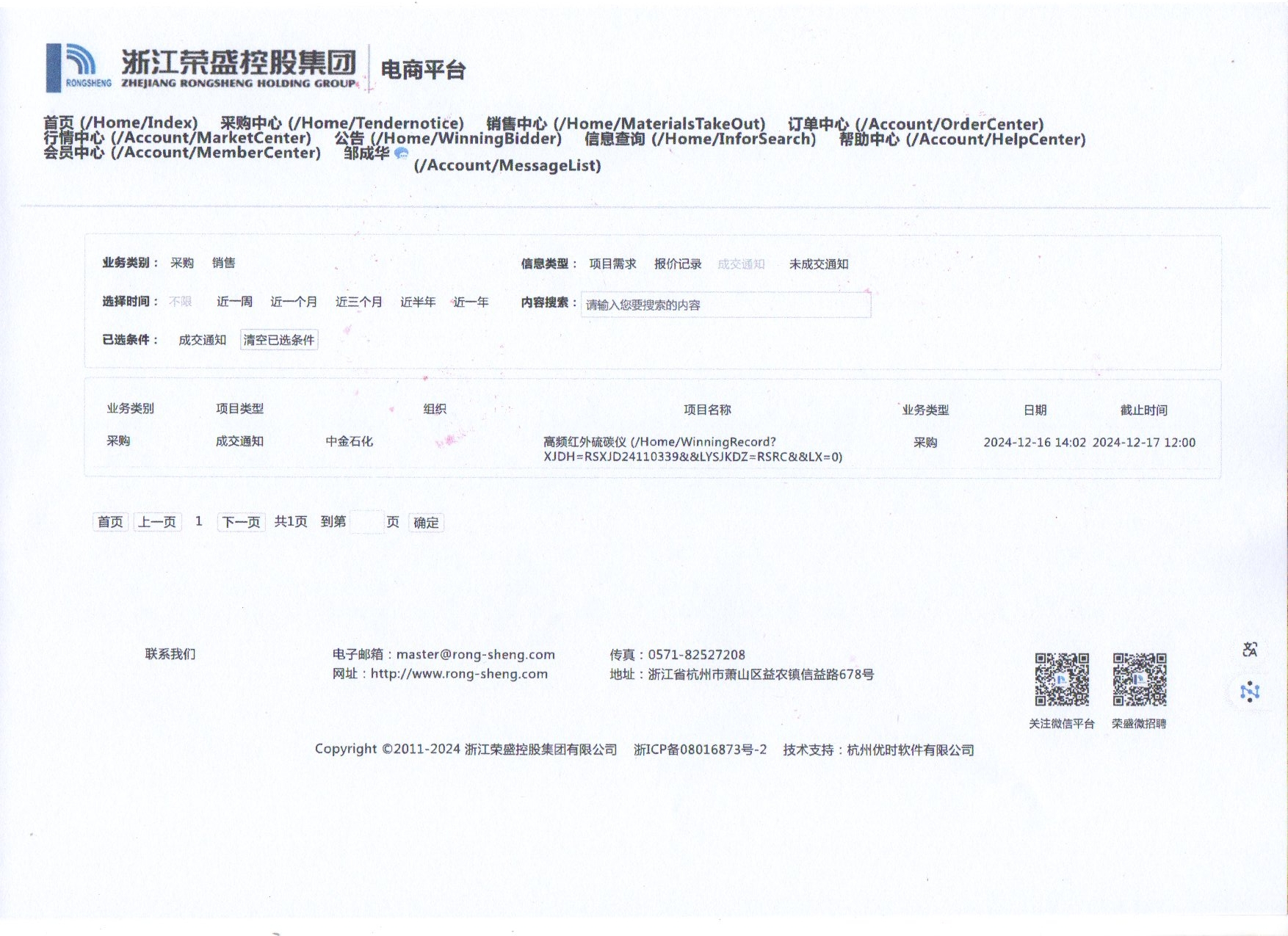 熱烈祝賀科果儀器(高頻紅外碳硫分析儀)二次中標榮盛控股集團